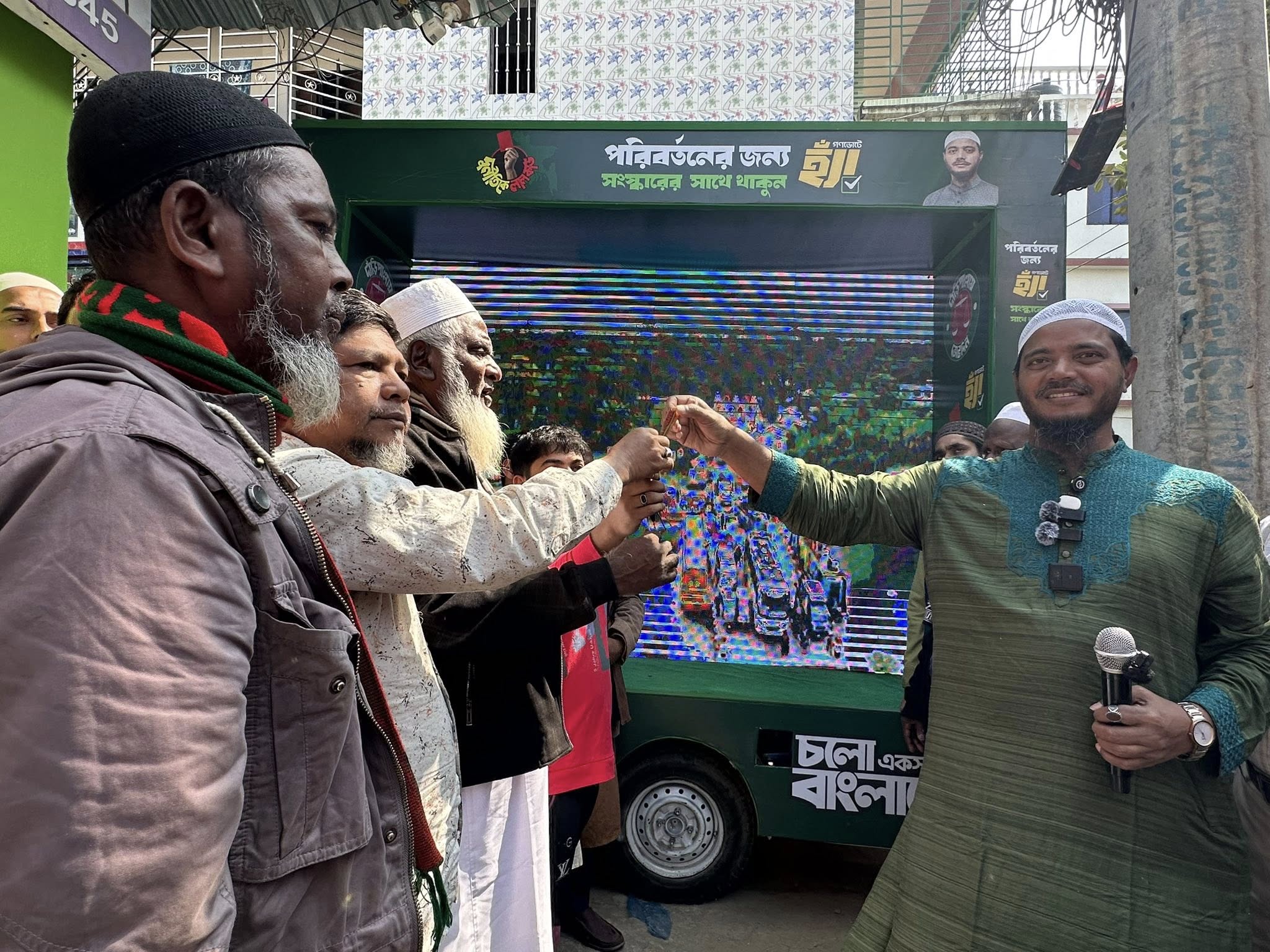 ১০ দলীয় জোটের মনোনীত প্রার্থী ও বাংলাদেশ জামায়াতে ইসলামীর কেন্দ্রীয় নেতা ড. শফিকুল ইসলাম মাসুদের সমর্থনে এক বিশাল নির্বাচনী প্রচারণা ও স্বাগত মিছিল অনুষ্ঠিত
