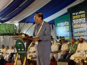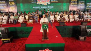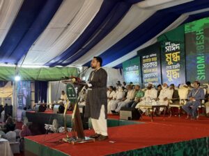 আজ ২৫ এপ্রিল ২০২৬, শনিবার ঐতিহাসিক সোহরাওয়ার্দী উদ্যানে ১১ দলীয় ঐক্যের আয়োজনে গণভোটের গণরায় বাস্তবায়নের দাবিতে জুলাই শহীদ পরিবার ও জুলাই যোদ্ধাদের জাতীয় সমাবেশ অনুষ্ঠিত হয়। উক্ত অনুষ্ঠানে প্রধান অতিথি হিসেবে উপস্থিত ছিলেন মাননীয় বিরোধীদলীয় নেতা ও বাংলাদেশ জামায়াতে ইসলামীর সম্মানিত আমীর জনাব ডা. শফিকুর রহমান এমপি।